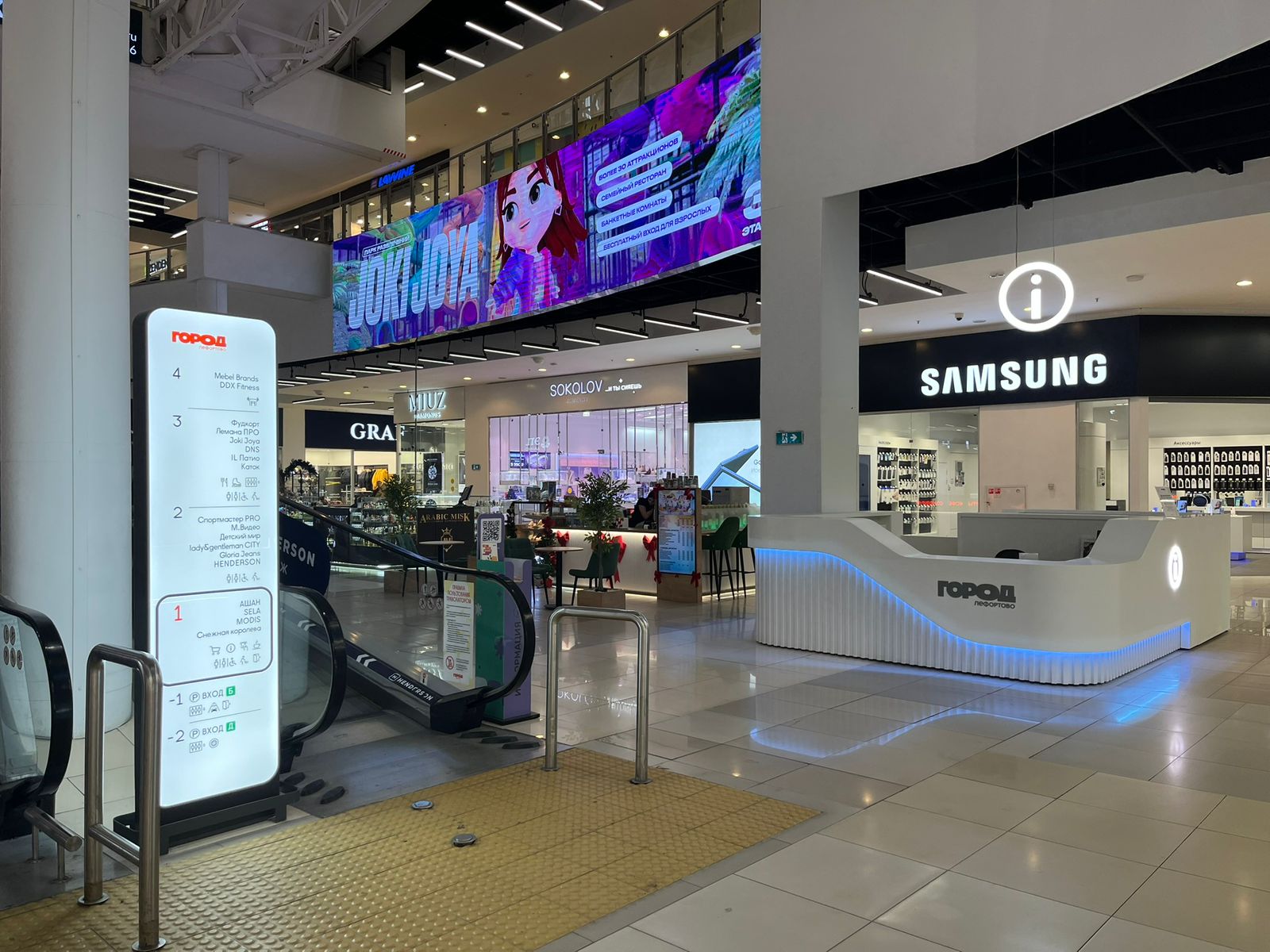 В торговом центре установлены новые навигационные тотемы у траволаторов и эскалаторов, а также поэтажные списки в лифтовых холлах. На всех уровнях появились обновлённые указатели туалетов и комнат матери и ребенка, что сделало перемещение по объекту проще и удобнее. Обновление стало частью комплексной работы по развитию клиентского опыта и улучшению инфраструктуры ТРЦ.