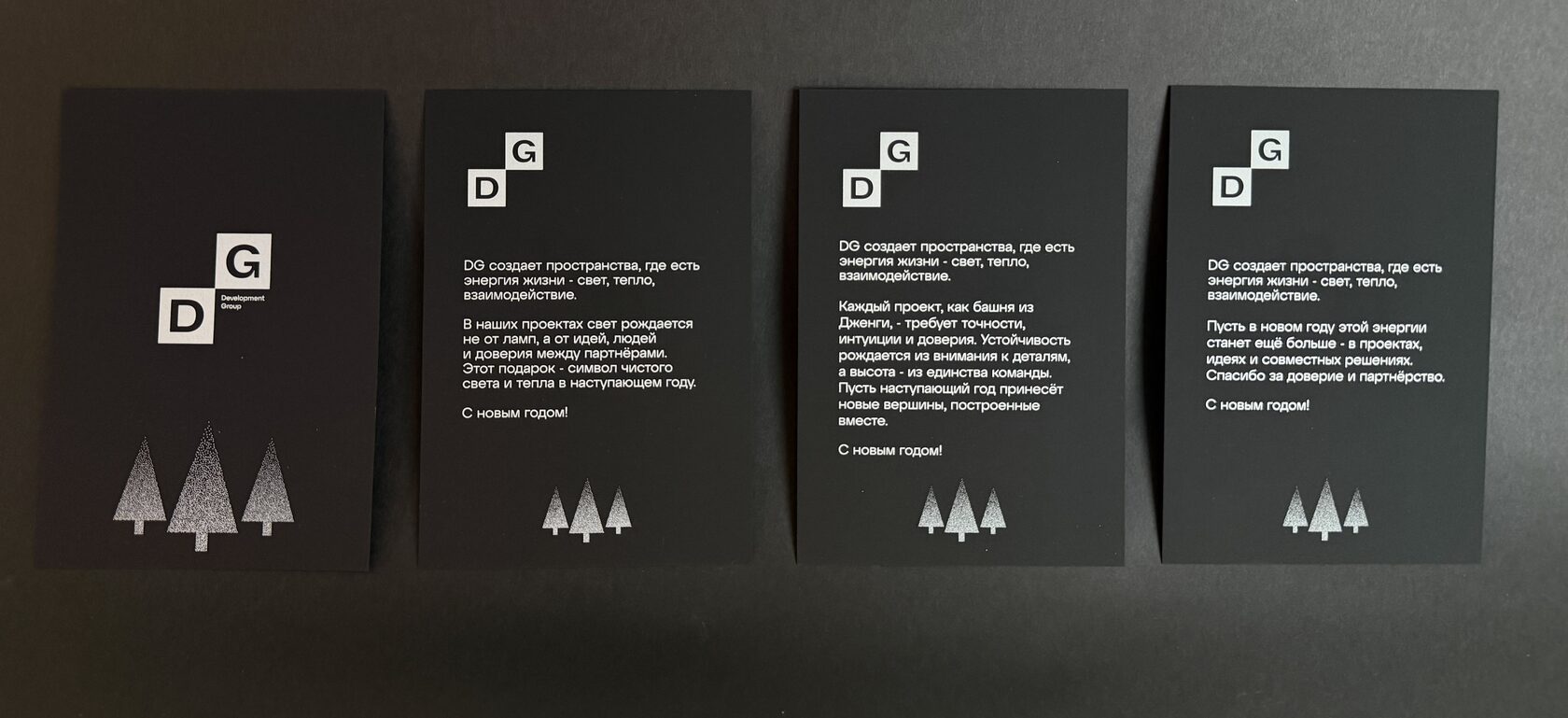 Новогодний мерч DG создан на базе нового фирменного стиля и отражает ключевые смыслы компании: энергию жизни, доверие, совместное созидание и внимание к моменту. Это не просто набор предметов, а продуманная коллекция символов, в которых зашита философия DG и подход к работе.